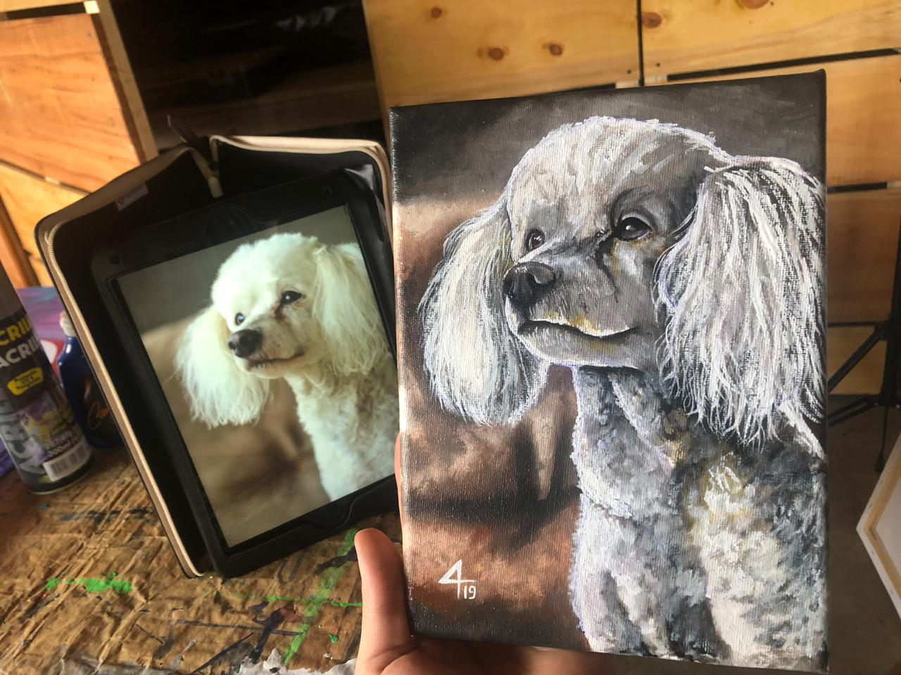 Descripción: Retratos de mascotas realizados a mano. Puedes personalizar tu cuadro con el fondo que prefieras, el costo varia según el tiempo que conlleve la realización del mismo.